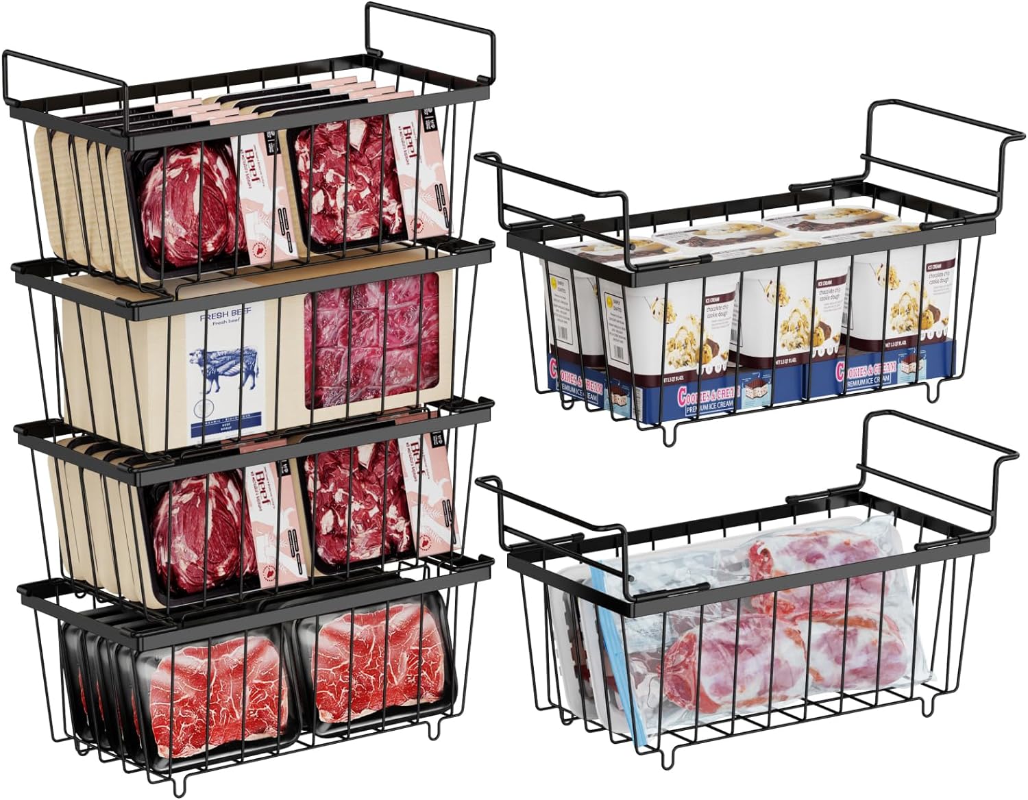 - [Sort and Avoid Food Loss] Store various meats in stackable freezer storage containers and store various small items of food such as unsealed meat and ice cream in a hanging chest freezer basket on the top of the freezer, avoid food expiry dates and waste due to chaotic storage