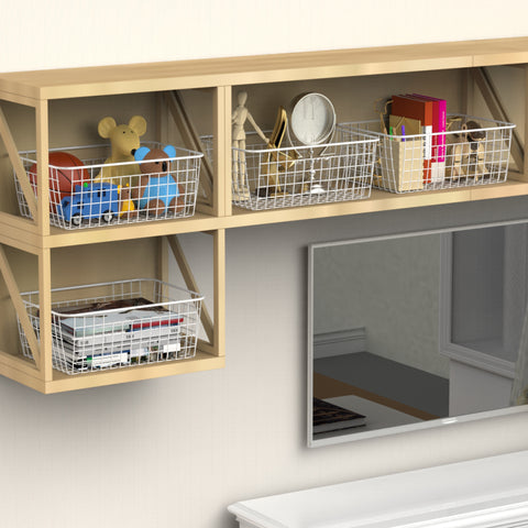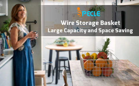 iSPECLE's wire basket series is a great solution to replace drawers on open shelving or inside a pantry. Because of the open weave, you can see what’s inside, and the lower scoop handle makes it easy to pull the storage basket off a shelf to retrieve the items inside. The styling has an industrial or farmhouse look, so it's an attractive option in a space where you want to show off items it's storing, like craft materials, or for items that need to breathe, like fruits and vegetables.